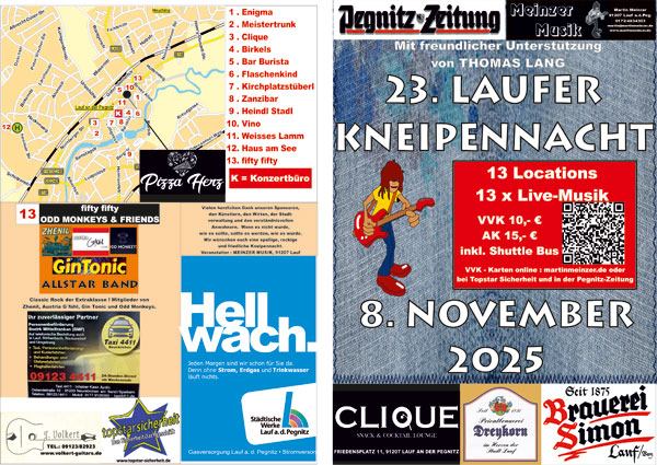 Die nächste Laufer Kneipennacht findet am 8. November 2025 statt.